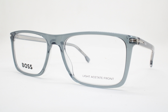 Aro de la marca Boss en acetato color celeste traslucido con detalles plateados
