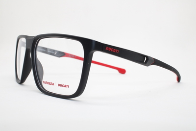 Aro de la marca Carrera en acetato tono negro matte con detalles en rojo