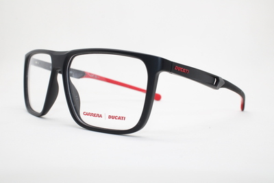 Aro de la marca Carrera en acetato tono negro matte con detalles en rojo