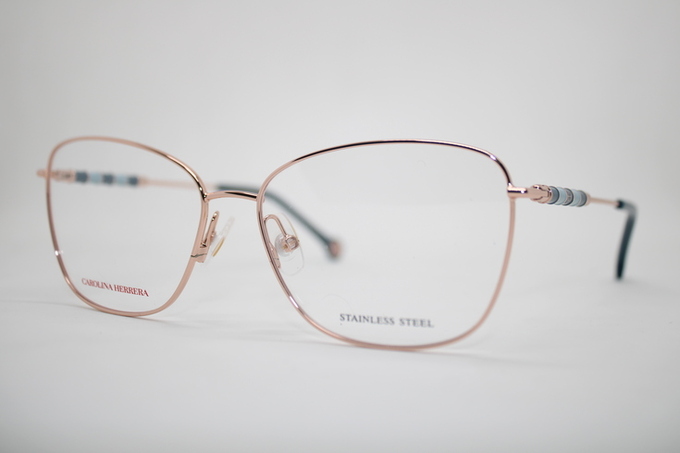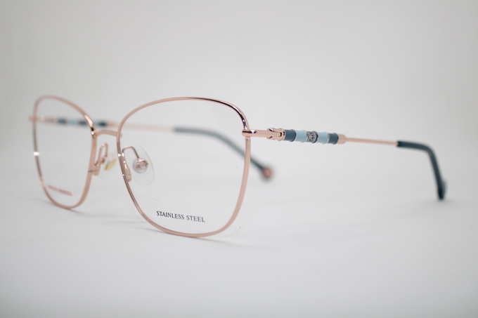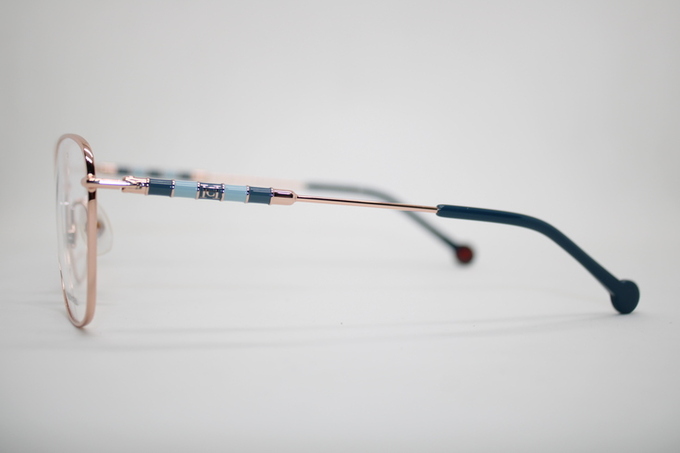 Aro de la marca Carolina Herrera metalico en tono dorado con detalles en tono azul con celeste