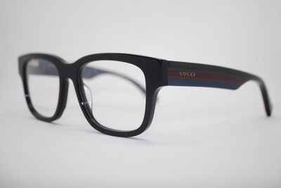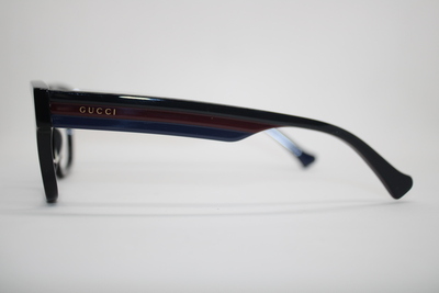Aro de la marca Gucci en acetato color negro con detalles en tono azul con rojo