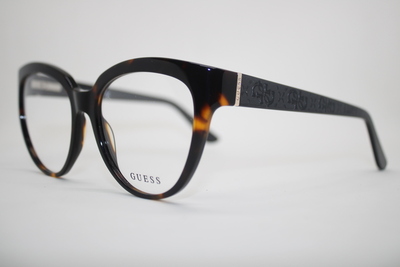Aro de la marca Guess en acetato color café tortoise con detalles plateados