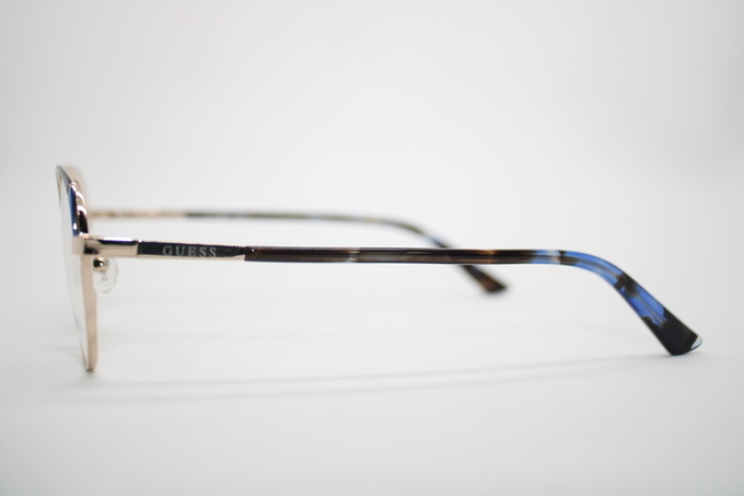 Aro de la marca Guess redondo metalico dorado con detalles en azul y negro