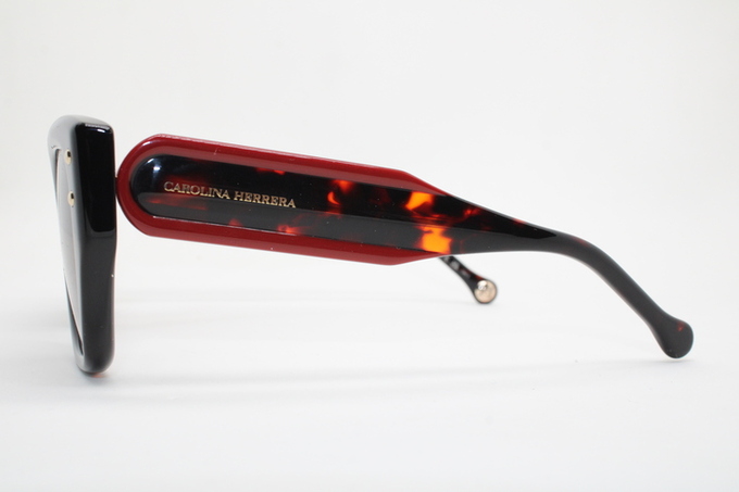 Aro de la marca Carolina Herrera en acetato tono negro con detalles en rojo