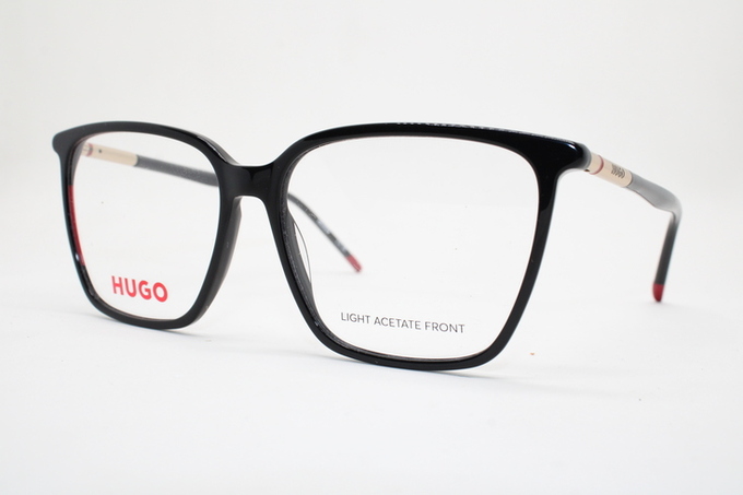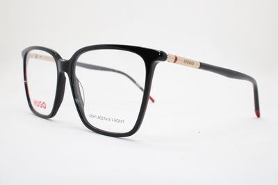 Aro de la marca Hugo Boss en acetato color negro con detalles en tono rojo