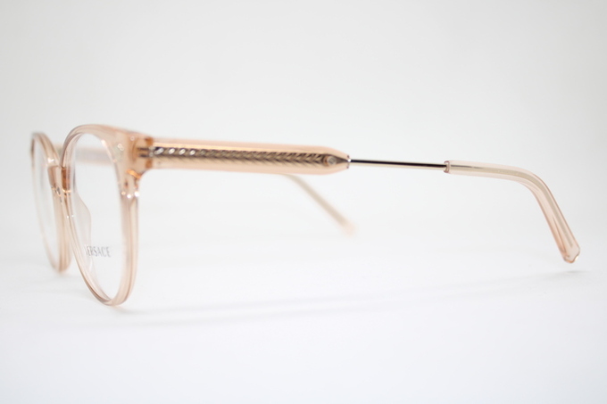 Aro de la marca Versace en acetato en tono rosa semitraslucido con detalles dorados
