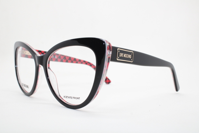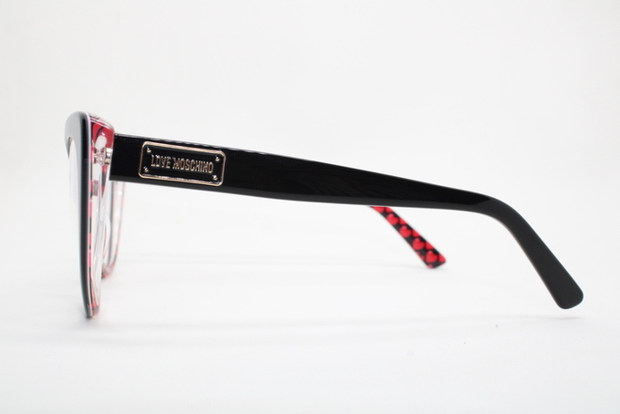 Aro de la marca Love Moshino en acetato color negro con detalles de corazon en rojo