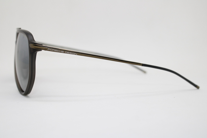 Aro de la marca Porsche en acetato doble puente color negro con detalles dorados de sol