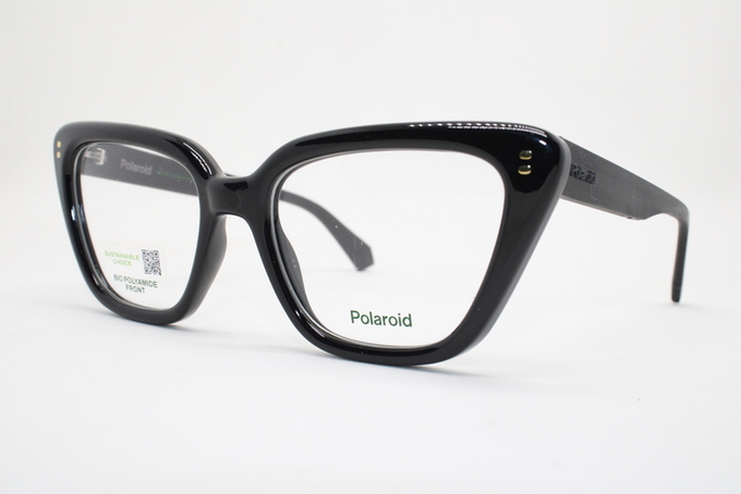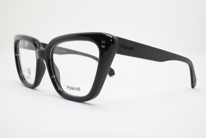 Aro de la marca Polaroid en acetato color negro brilloso con detalles dorados