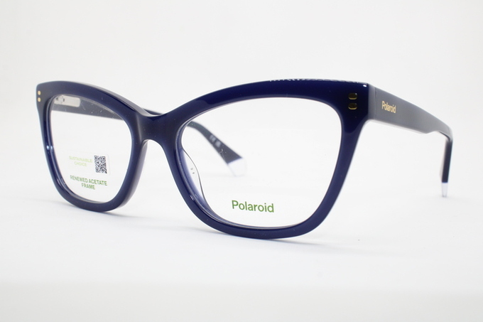 Aro de la marca Polaroid en acetato azul con detalles dorados