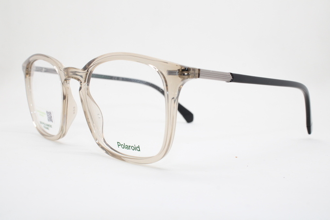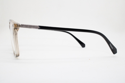Aro de la marca Polaroid en acetato color gris semitraslucido con detalles en tono negro