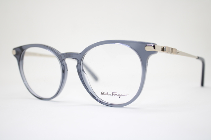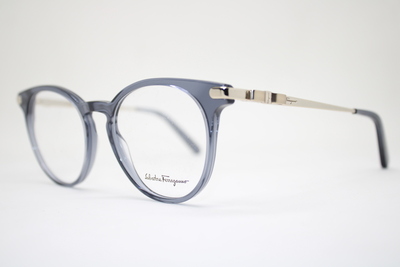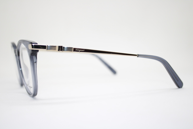 Aro de la marca Salvatore Ferragamo en acetato en tono azul semitraslucido con detalles plateados