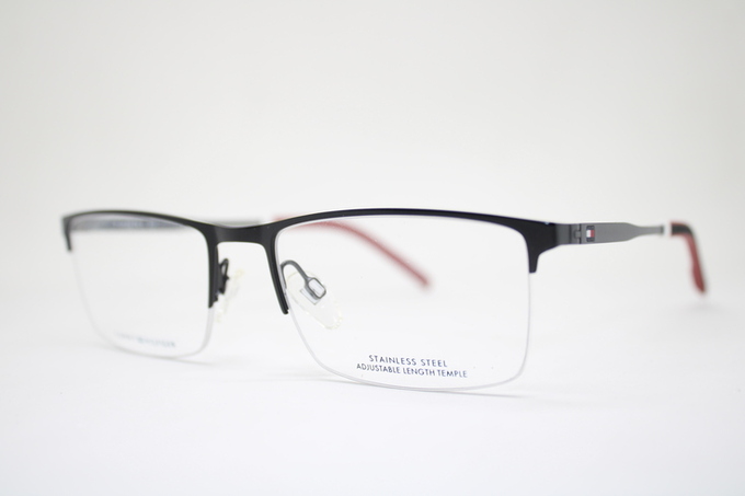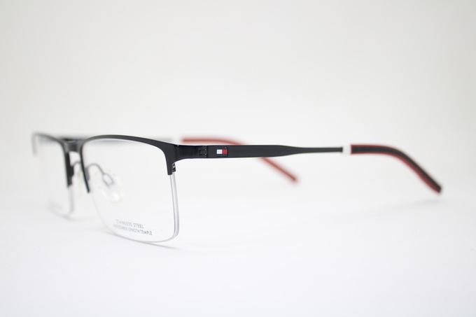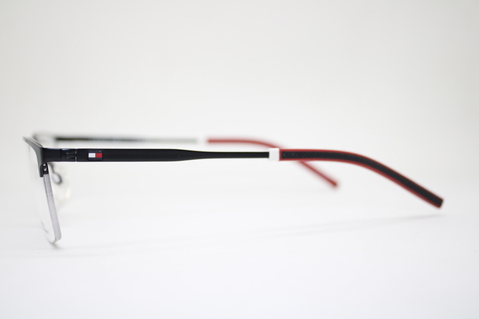 Aro de la marca Tommy Hilfiger semi al aire en tono negro con plaquetas con detalles en tono rojo
