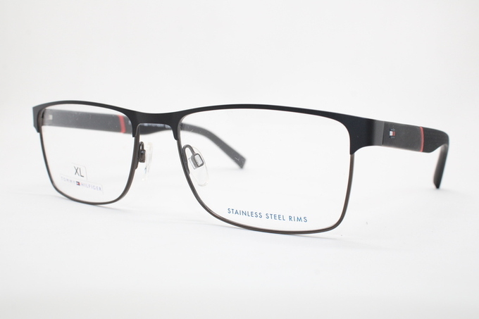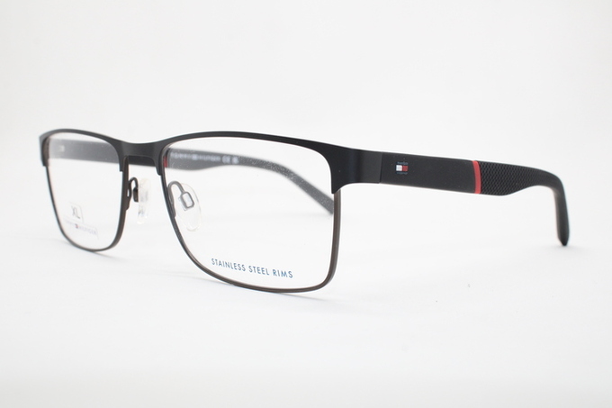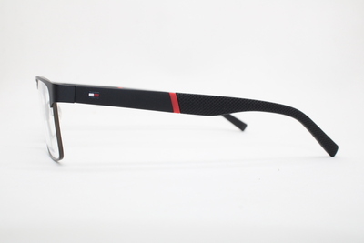 Aro de la marca Tommy Hilfiger metalico en tono negro con detalles rojos