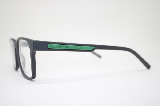 Aro de la marca Tommy Hilfiger en acetato en tono negro matte con detalles en tono verde matte