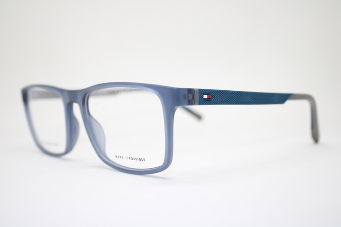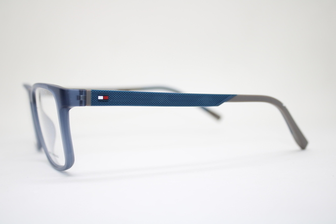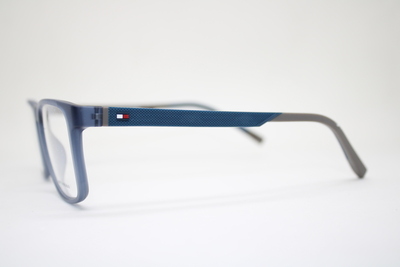 Aro de la marca Tommy Hilfiger en acetato en tono azul matte con detalles en gris