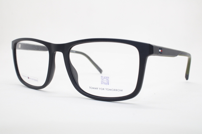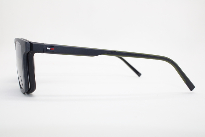 Aro de la marca Tommy Hilfiger en acetato en tono negro matte con detalles verde