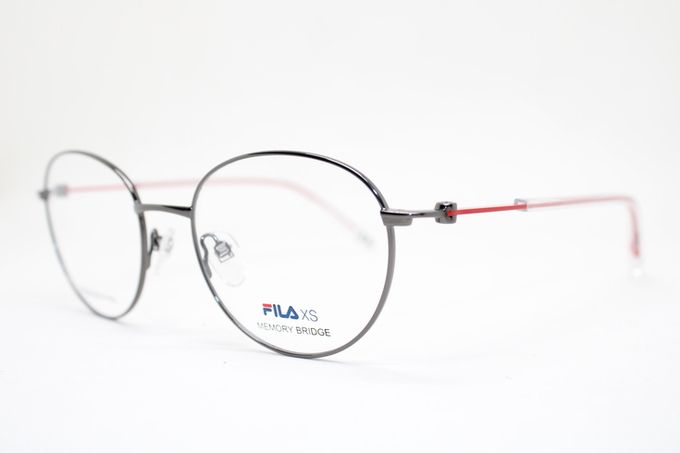 Aro de la marca Fila metalico en tono gris con detalles traslucidos y tonos rojos