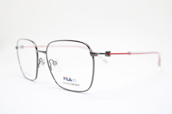 Aro de la marca Fila metalico en tono gris con detalles traslucidos y tonos rojos
