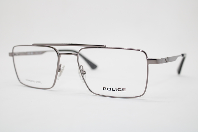 Aro de la marca Police metalico en tono gris doble puente con detalles en tono negro