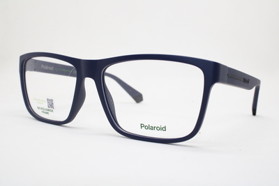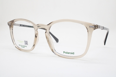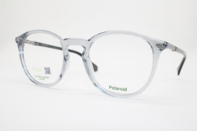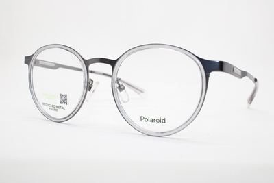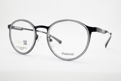 Aro de la marca Polaroid en acetato color gris semitraslucido con detalles en tono negro