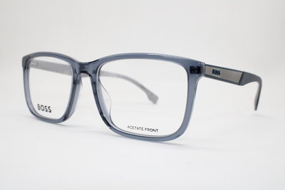 Aro de la marca Boss en acetato color celeste traslucido con detalles plateados