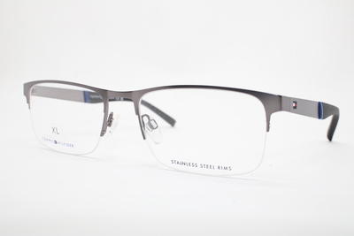 Aro de la marca Tommy Hilfiger semi al aire en tono plateado con detalles en azul