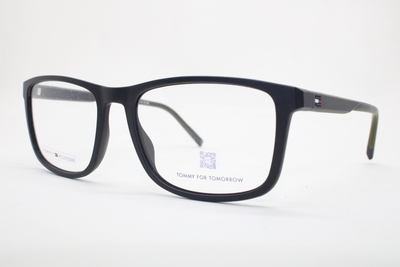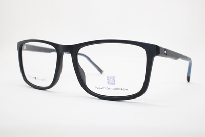 Aro de la marca Tommy Hilfiger en acetato en tono negro matte con detalles celestes