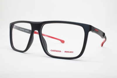 Aro de la marca Carrera en acetato tono negro matte con detalles en rojo