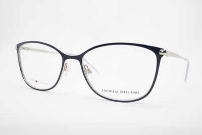 Aro de la marca Tommy Hilfiger metalico con plaqueta en tono azul con detalles plateados