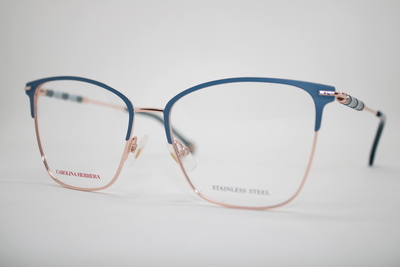 Aro de la marca Carolina Herrera en acetato color turqueza con detalles en dorado