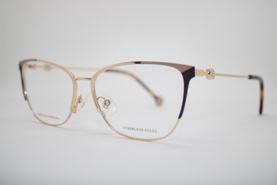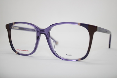 Aro de la marca Carolina Herrera en acetato color morado traslucido con detalles café
