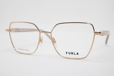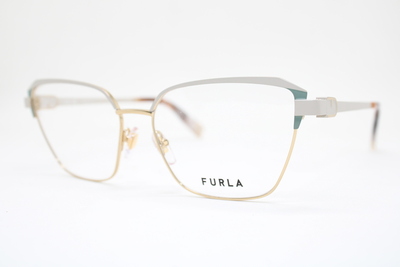 Aro de la marca Furla en acetato en tono café tortoise con detalles en celeste y tonos dorados