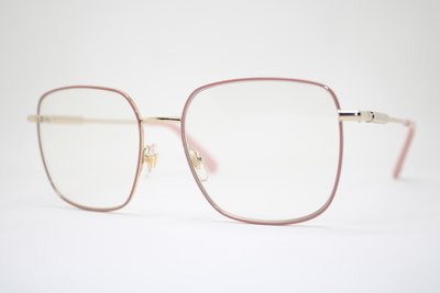 Aro de la marca Versace en acetato en tono rosa semitraslucido con detalles dorados