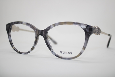 Aro de la marca Guess en acetato en tono gris semi tralucido con detalles dorados y morados