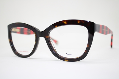 Aro de la marca Carolina Herrera en acetato en tono café tortoise con detalles en rojo