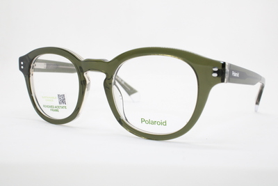 Aro de la marca Polaroid en acetato color verde semi traslucido con detalles plateados