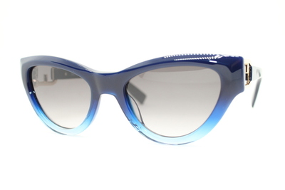 Aro de la marca Furla en acetato tono azul degradado con detalles dorados de sol